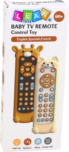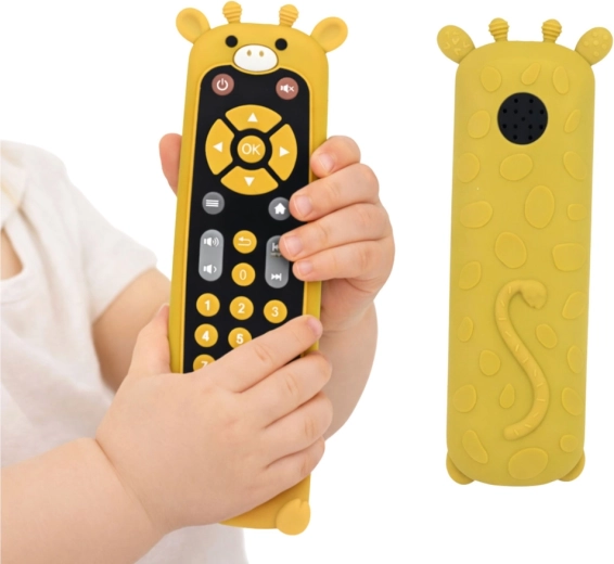 De interactieve afstandsbediening voor de allerkleinsten in de vorm van een vrolijke giraffe combineert spelen en leren. Bij het indrukken van de grote, overzichtelijke knoppen klinken melodieën, geluiden en gesproken woorden, gaat het gekleurde licht branden en maakt het kind op natuurlijke wijze kennis met cijfers en vreemde talen. De ergonomische vorm nodigt uit tot grijpen en ontdekken, terwijl het zachte siliconen bijtspeeltje verlichting biedt voor het tandvlees tijdens het doorkomen van tandjes.