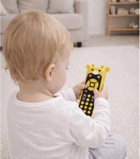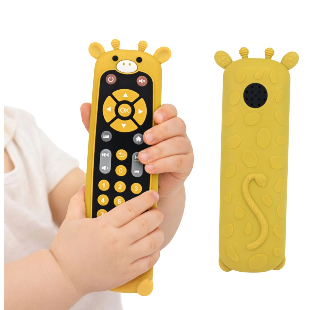 Een schattige interactieve afstandsbediening in de vorm van een giraffe, ideaal voor baby’s vanaf 6 maanden. Biedt lichteffecten, melodieën en geluiden, leert cijfers en woorden in 3 talen (EN/FR/ES) en heeft een zacht siliconen bijtspeeltje voor verlichting bij doorkomende tandjes. Veilige materialen van ABS + siliconen, BPA-vrij, afgeronde randen en slijtvaste prints ondersteunen de zintuiglijke ontwikkeling en hand-oogcoördinatie.