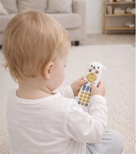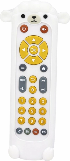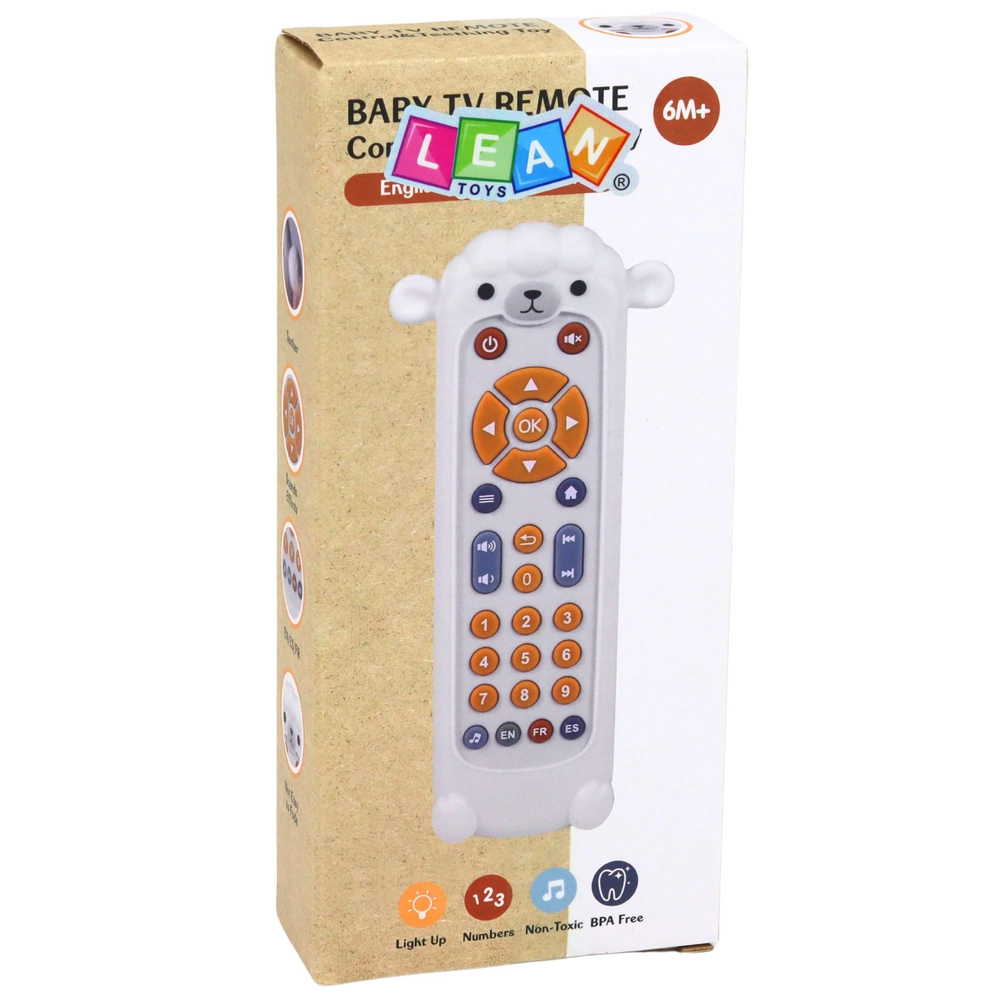 De interactieve afstandsbediening in de vorm van een schaapje combineert plezier en leren in één speeltje. De realistische indeling van de knoppen ondersteunt de fijne motoriek en oog-handcoördinatie, terwijl lichten, melodieën en gesproken cijfers het auditieve en visuele waarnemen ontwikkelen. Dankzij de drie talen (Engels, Frans, Spaans) raakt het kind op natuurlijke wijze vertrouwd met klanken van vreemde talen.
