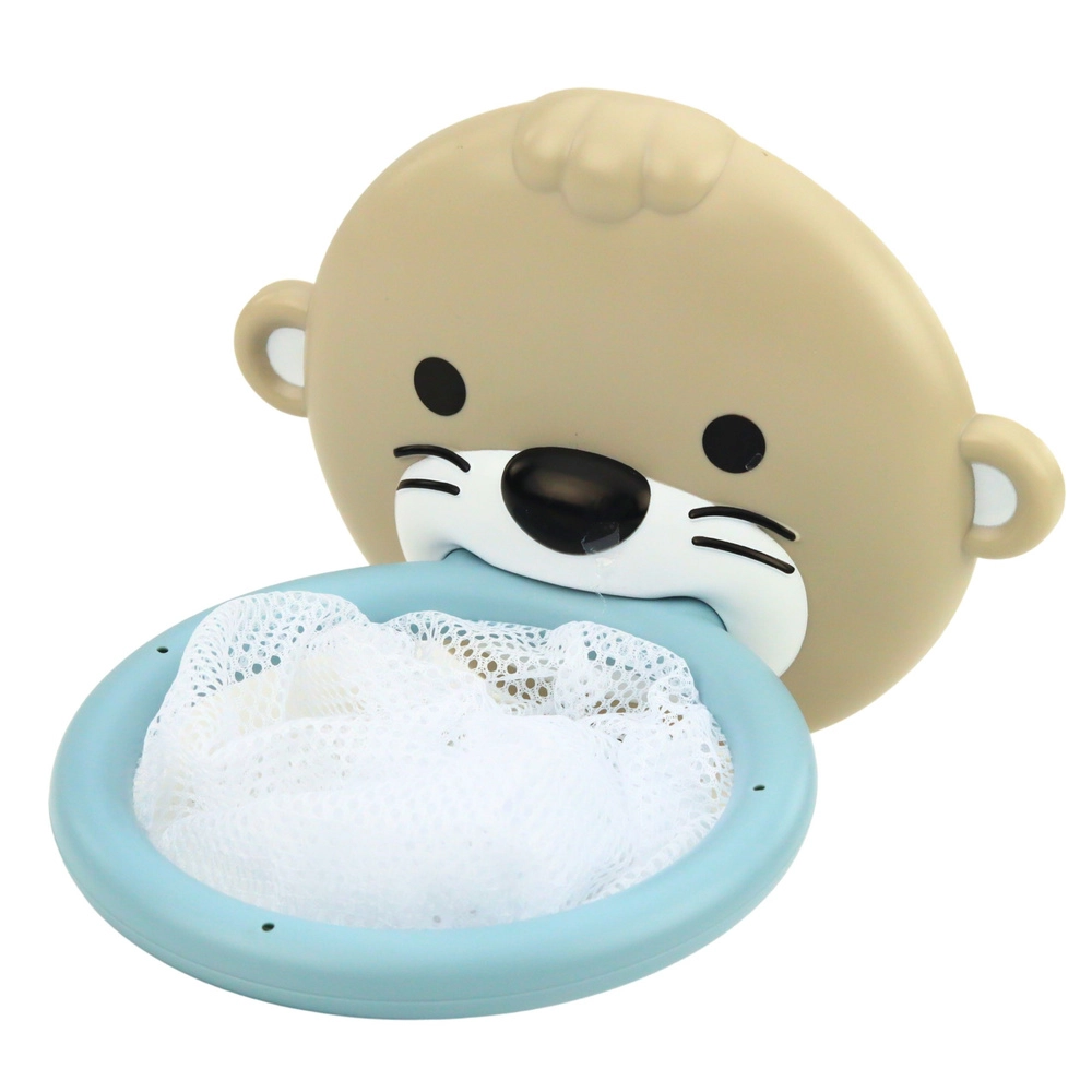Deze badset met otterfamilie biedt kinderen volop speelmogelijkheden – van scheppen en overgieten tot in het mandje gooien. De onderdelen zijn licht, aangenaam zacht en drijven, zodat je kind eenvoudig oog-handcoördinatie en grip oefent. Het mandje met net bevestig je met de zuignap op gladde tegels of aan de badrand; na het baden kunnen de speeltjes erin uitlekken en drogen.
