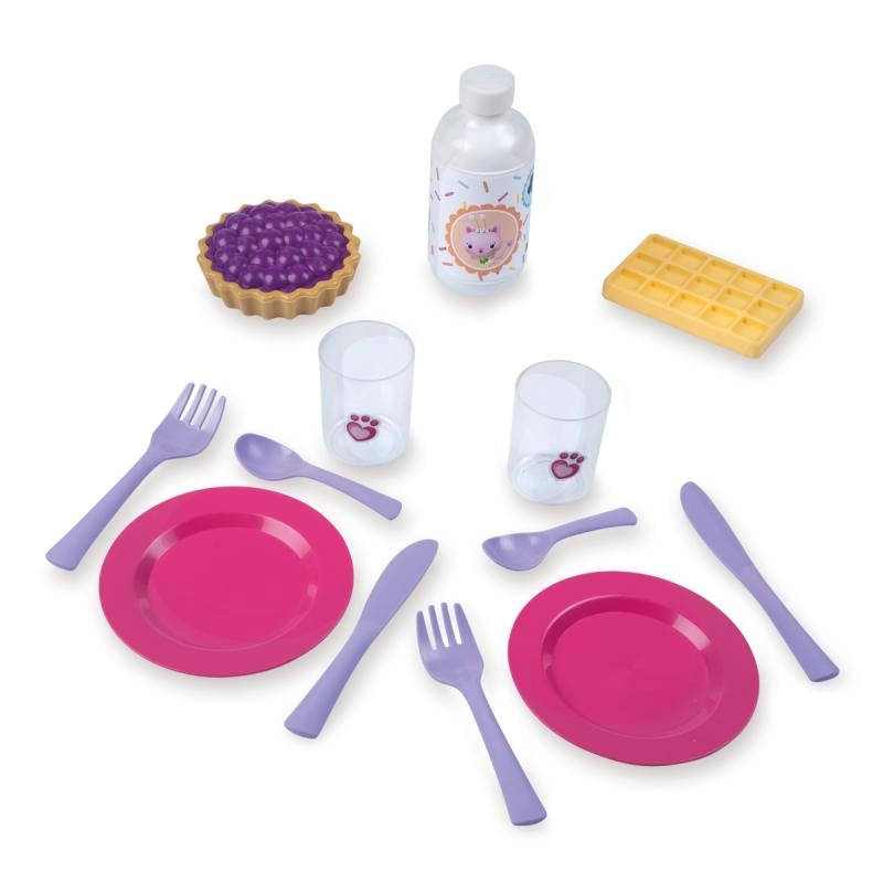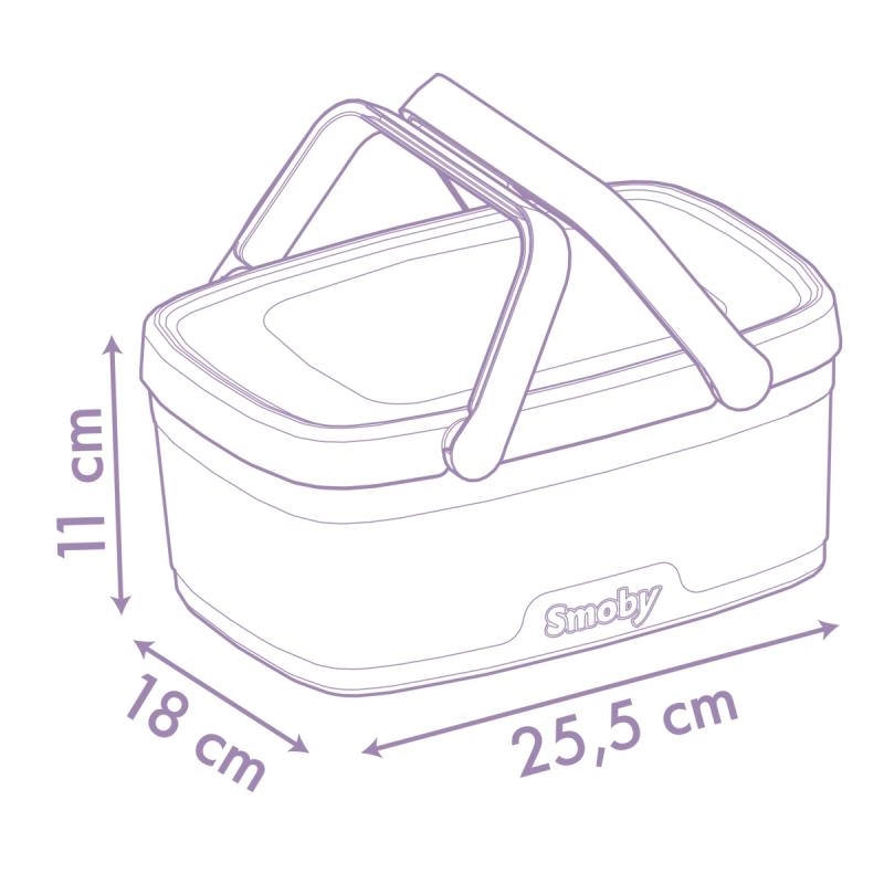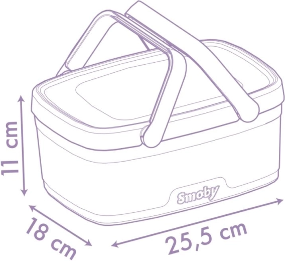 De set bevat 14-delige accessoires ideaal voor spel met z’n tweeën: 2 bordjes, 2 lepeltjes, 2 messen, 2 vorkjes, 2 bekers, een wafel, slagroom, een bosbessentaart en een fles limonade. Alles past netjes in de mand, waardoor de set makkelijk op te bergen en klaar voor vertrek is.