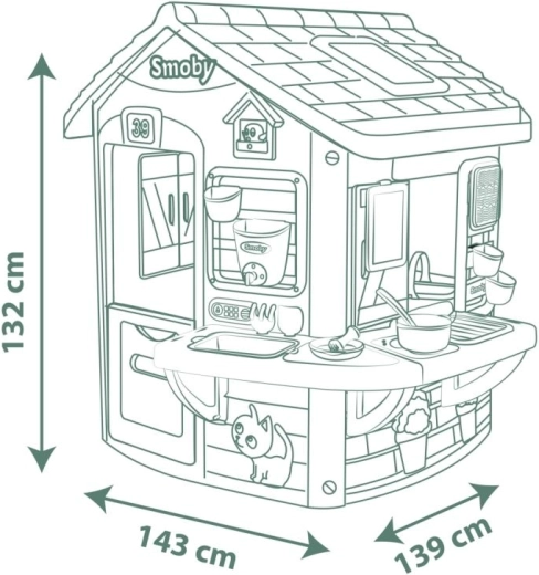 Ontdek het ruime tuinhuisje met keuken van SMOBY, dat creatief spelen met water en modder stimuleert. Voorzien van 2 deuren, 2 ramen met luiken en een praktisch uitgifteraam. Inclusief 16 accessoires en ophanghaakjes voor orde. Dankzij het UV-bestendige kunststof is het huisje stabiel, weerbestendig en kleurvast. Bevat min. 50% gerecycled materiaal en is geschikt voor kinderen vanaf 2 jaar.