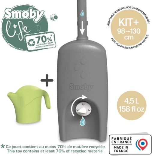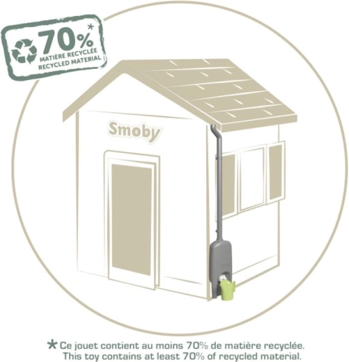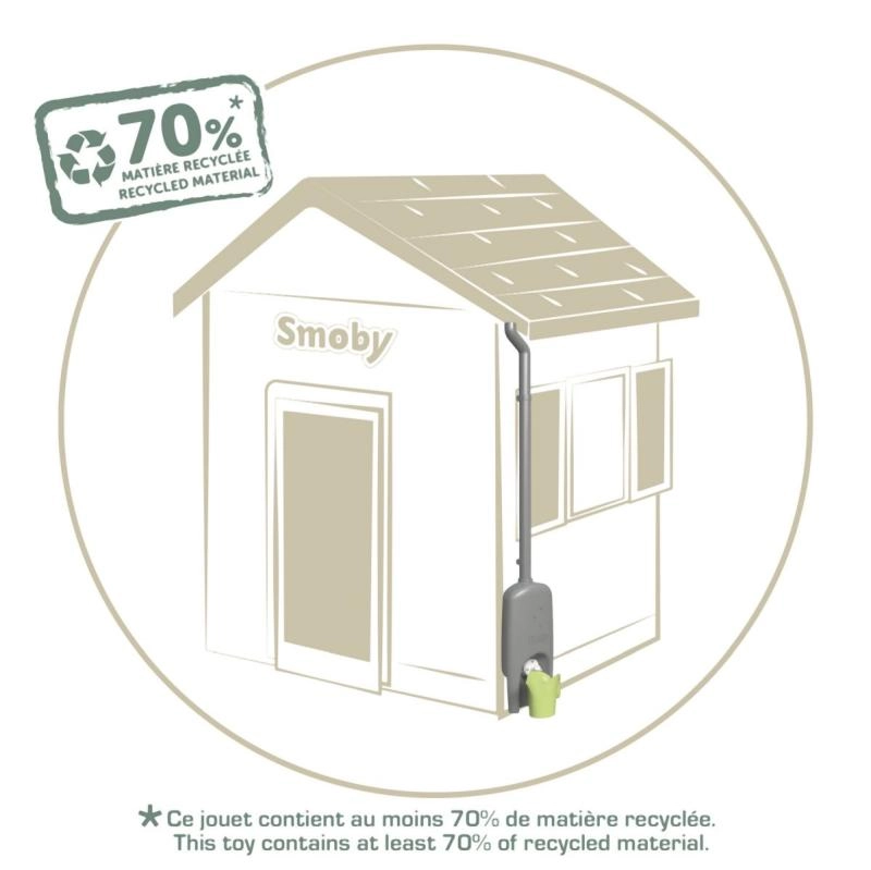 Praktische accessoire voor SMOBY speelhuisjes – dakgoot met regentank en gieter. Het systeem vangt water op in een reservoir van 4,5 l, dat kinderen eenvoudig kunnen gebruiken om te gieten. Dankzij de eenvoudige installatie, een grote schroefkraan en Anti‑UV‑bescherming is deze accessoire duurzaam, veilig en klaar voor uren buitenspelen en leren over ecologie. Bevat minstens 70% gerecycled materiaal.