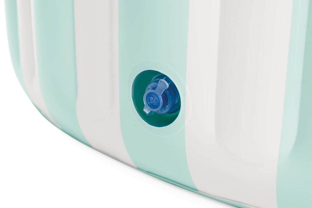 Kwalitatieve ventielen versnellen zowel het opblazen als het opbergen. Het aftapventiel maakt eenvoudig en schoon leeglaten mogelijk zonder het badje op te tillen.