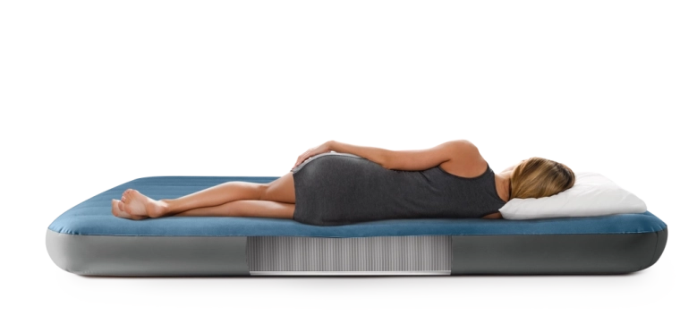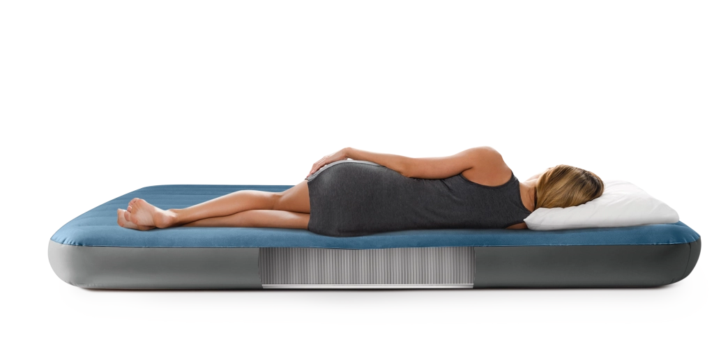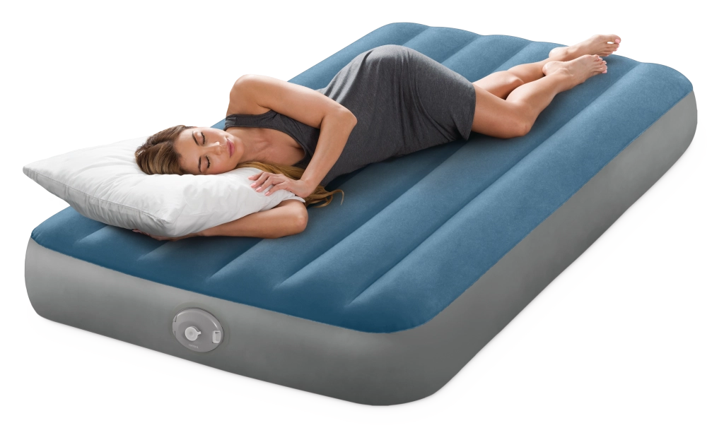 Het opblaasbare bed Twin Prestige Downy is ontworpen voor een stabiele en comfortabele slaap. De gepatenteerde Fiber‑Tech-constructie met duizenden sterke vezels verdeelt de druk over de volledige lichaamslengte, terwijl het fluweelzachte blauw‑grijze oppervlak prettig aanvoelt en het verschuiven van het laken voorkomt.