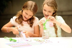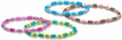 Bevat gekleurde papieren stroken en benodigde materialen voor het maken van kralen en armbanden.