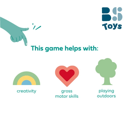 De set is ideaal voor groepsspel met 1–4 spelers en stimuleert op natuurlijke wijze creativiteit, coördinatie en samenwerking. Dankzij de overzichtelijke opdrachtkaarten is de voorbereiding snel en intuïtief – gooi met de dobbelsteen, leg de werpstenen neer en spelen maar!