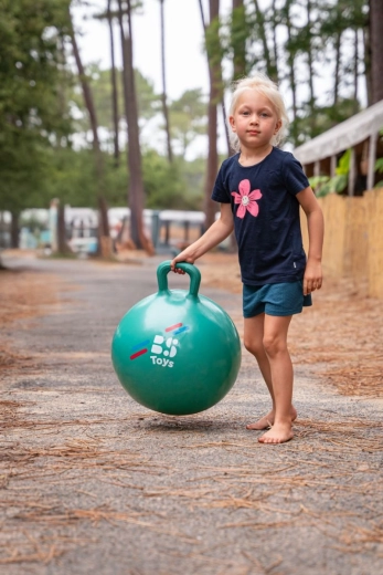 De groene springbal met ergonomisch handvat biedt kinderen vanaf 3 jaar volop beweging en plezier. Dankzij de veilige grip zorgt hij voor meer stabiliteit en stimuleert hij de grove motoriek, balans en actief spel binnen en buiten.