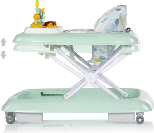 De Baby Steps loopstoel in elegante mint combineert spelen, leren en bewegen in één. Dankzij het interactieve paneel met kleurrijk speelgoed, lichtjes en knopjes ontdekt het kind nieuwe prikkels, traint het de fijne motoriek en bouwt het tegelijk zelfvertrouwen op bij de eerste looppogingen. Drie hoogtestanden maken het mogelijk de loopstoel aan te passen aan de actuele lengte van het kind voor ergonomisch en comfortabel gebruik.