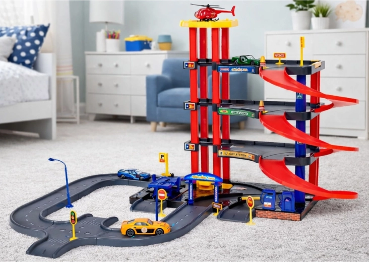 Bouw je eigen bruisende stad! De robuuste garage met vier verdiepingen bootst echt stadsparkeren levensecht na. Kinderen kunnen de autootjes met het liftsysteem naar boven brengen, over de lange hellingen laten zoeven en op de helihaven laten landen. Inclusief tankstation, voertuigkeuring en meerdere parkeerplaatsen.