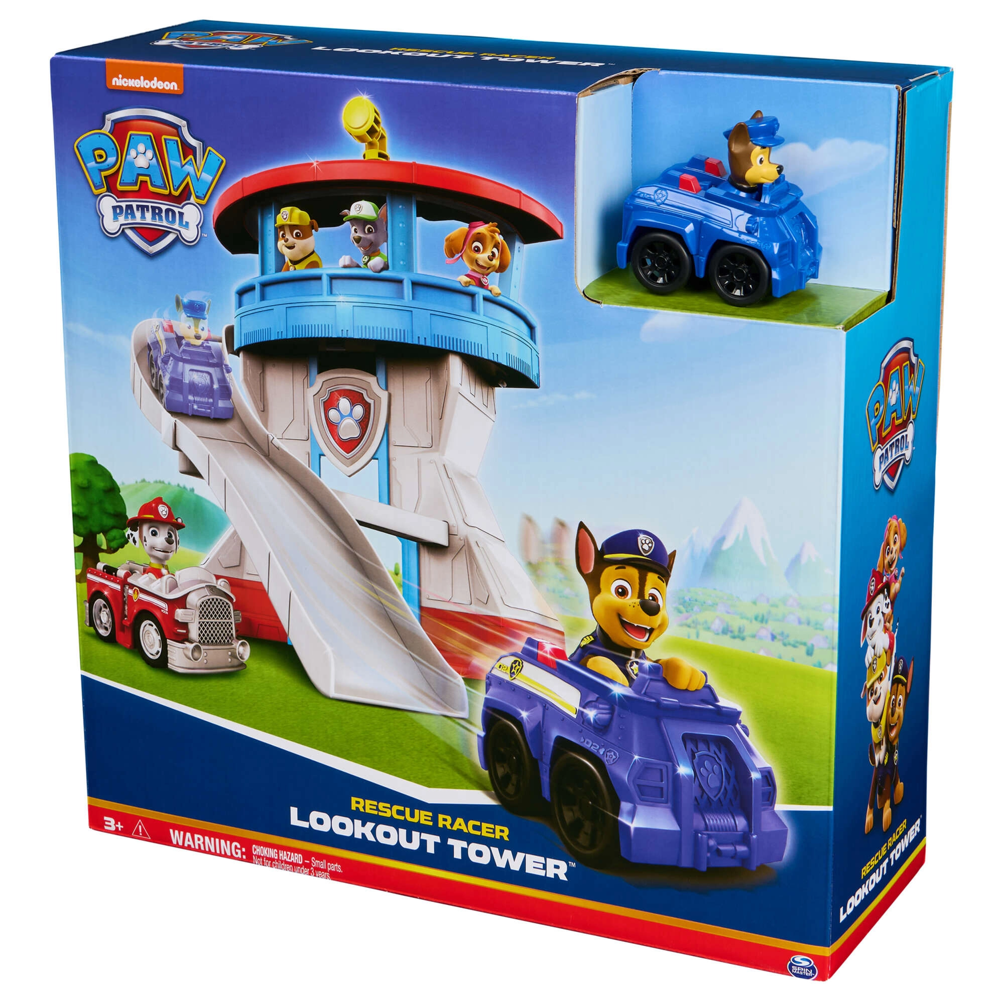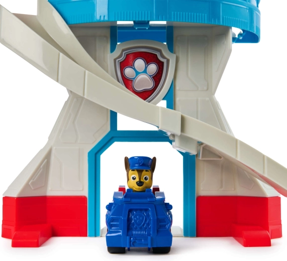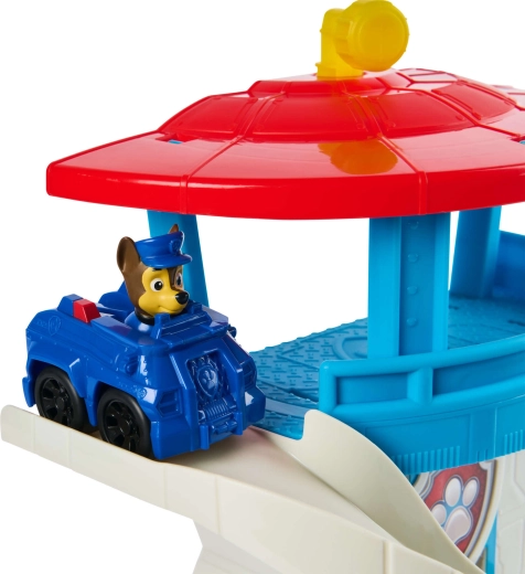 Laat Chase in de politieauto over de lange gebogen glijbaan naar beneden suizen en vertrek binnen een oogwenk op missie. Geweldige actie die kinderen meteen in het spel trekt.