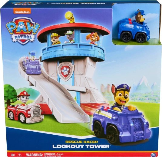 Deze kleurrijke speelset, geïnspireerd op de serie Paw Patrol, biedt kinderen een realistische basis voor hun reddingsscenario’s. De toren is versierd met de iconische hondenbadge en bovenop vind je een draaibare gele periscoop waarmee Chase de omgeving kan controleren. Er is ook een compacte blauwe auto met het figuurtje van Chase – klaar voor een snelle rit over de gebogen glijbaan.