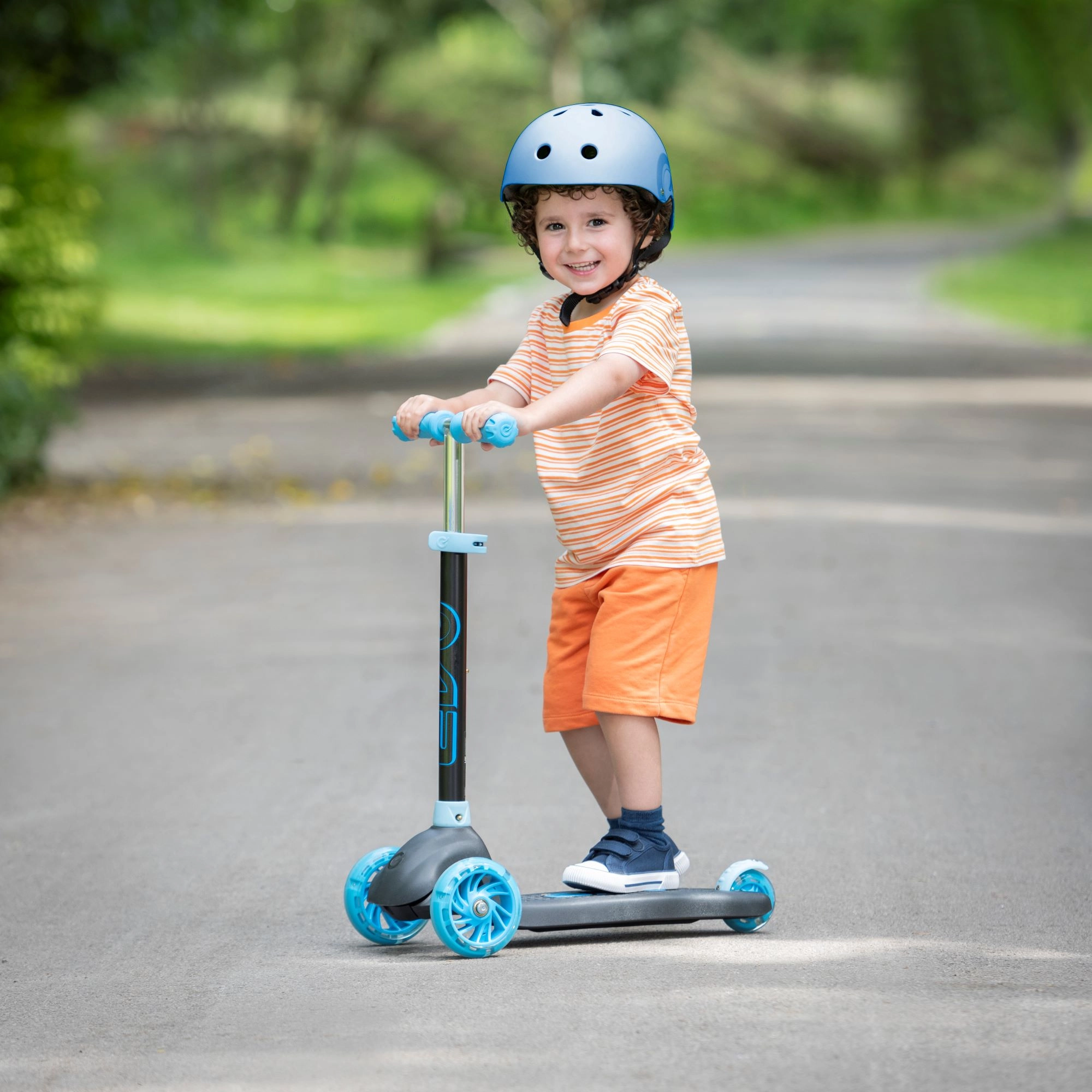 Twee voorwielen en één achterwiel zorgen voor uitstekende stabiliteit, het antislip deck geeft grip en het achterspatbord fungeert als voetrem.
