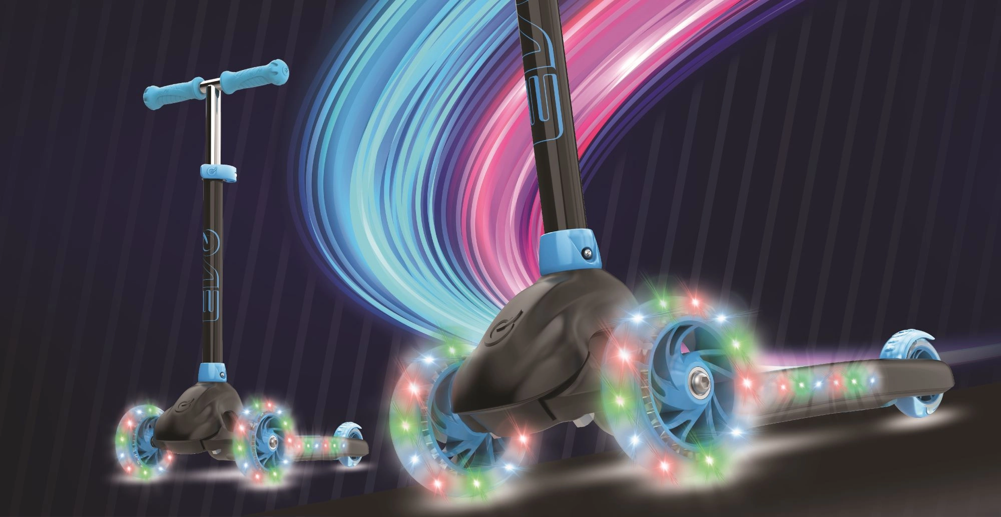 De verlichte wielen en de rand van het deck zorgen voor een gaaf effect en betere zichtbaarheid in de schemering. Plaats gewoon 3× AAA-batterijen (niet inbegrepen).