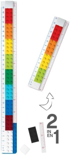Een leuke en praktische LEGO liniaal van 30 cm met minifiguur die je eenvoudig naar wens samenstelt. Dankzij de verwisselbare gekleurde steentjes pas je uiterlijk en lengte aan, en je profiteert van de schaalverdeling in centimeters en inches. De basisplaatjes maken het mogelijk om een potlood, puntenslijper of je favoriete figuur vast te klikken – ideaal voor school, kantoor en creatief spel.