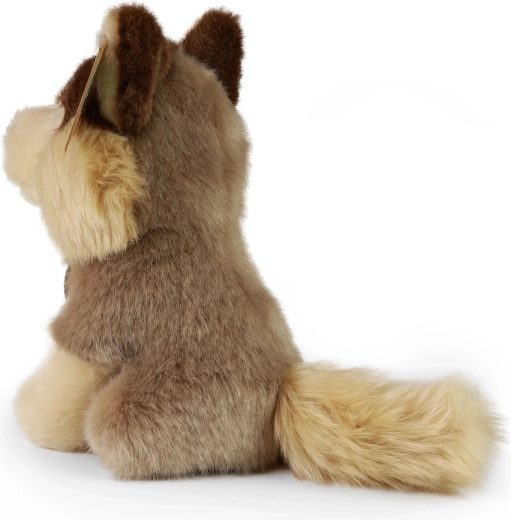 Deze zittende pluchen wolf verovert de harten van zowel kinderen als volwassenen. De zachte, tweekleurige vacht, de gedetailleerd geborduurde snuit en de expressieve ogen geven de knuffel een realistische look. Dankzij het compacte formaat van 16 cm is hij ideaal om thuis en onderweg te knuffelen.