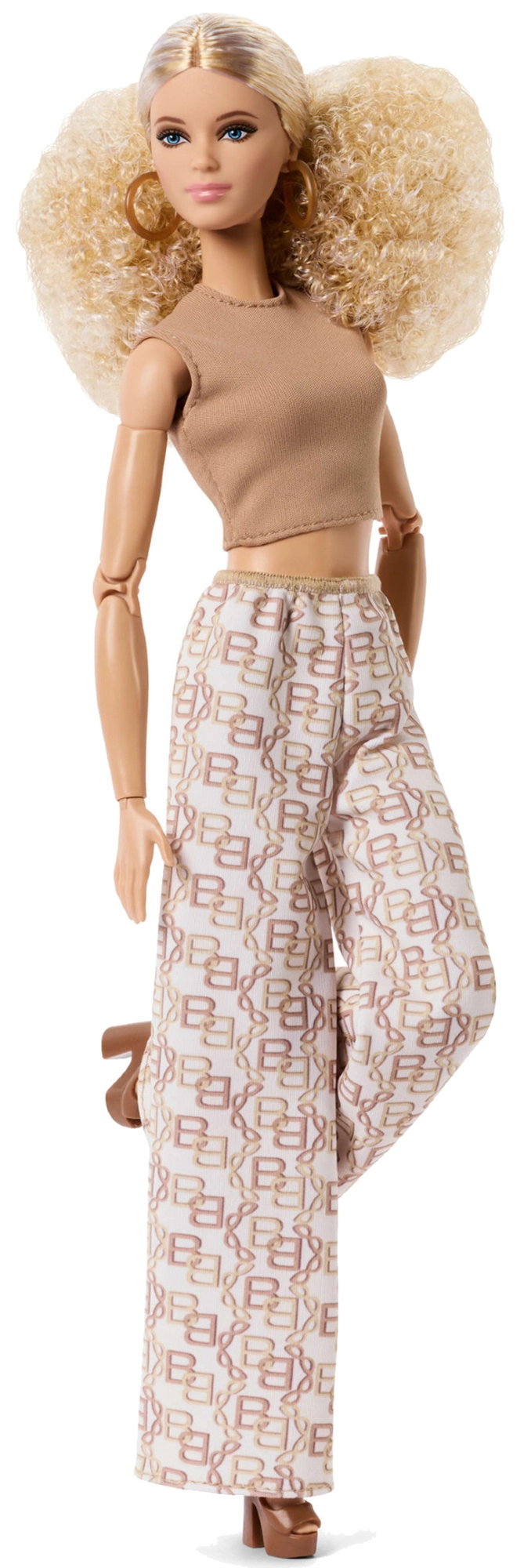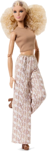 De stijl is gehouden in neutrale, tijdloze tinten – lichtbruin, wit en goud. De pop draagt een elegante top en lange, wijde broek die perfect te combineren zijn met andere BARBIE-accessoires. Dankzij de standaardhoogte van ca. 29 cm is ze compatibel met de meeste BARBIE-accessoires en -meubels.