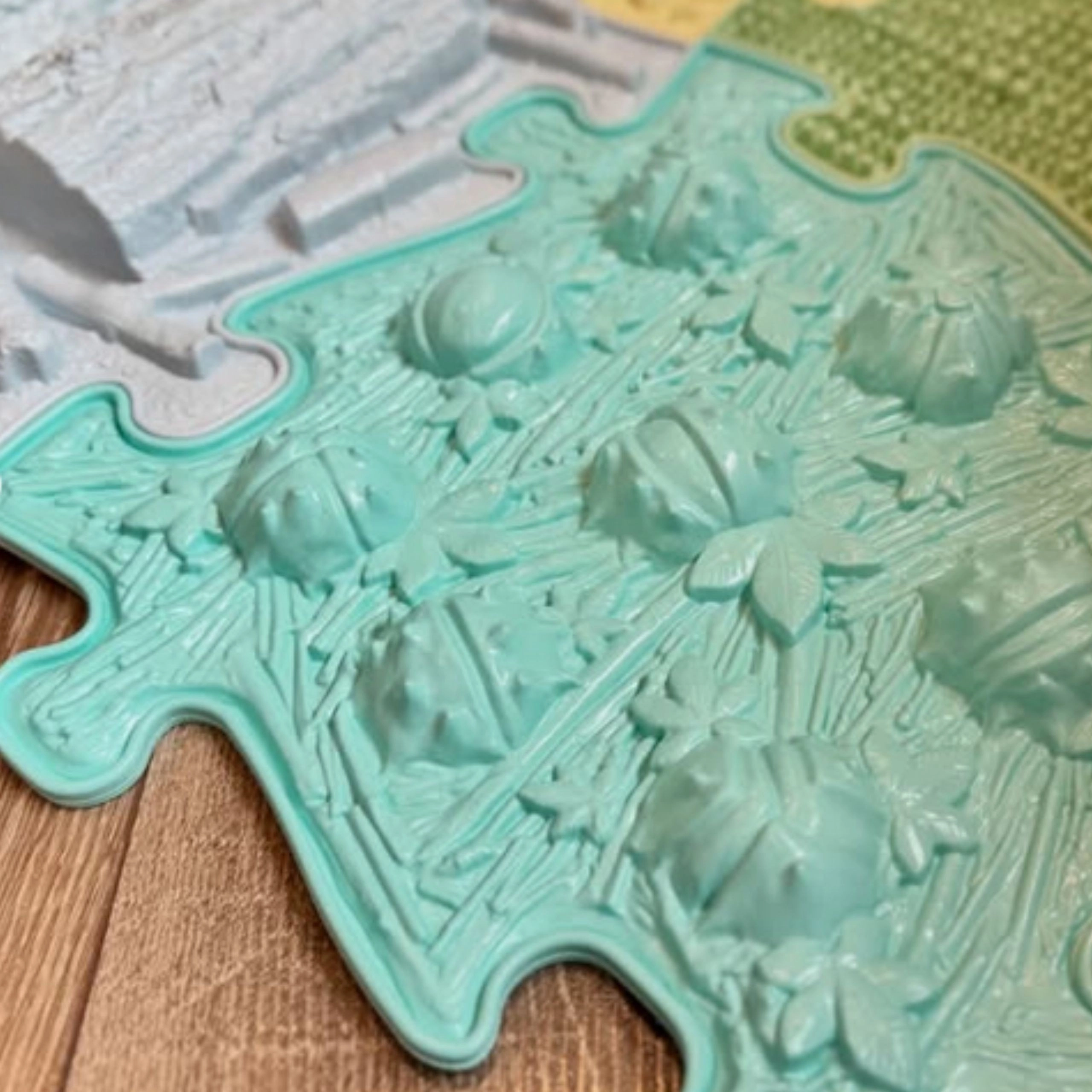De sensorische puzzelmatten van WOOPIE bieden gerichte stimulatie van de voeten dankzij diverse reliëfoppervlakken – van “wortels” en “stenen” tot “gras” en “tractorbanden”. De modulariteit met vergrendelrand maakt het eenvoudig om verschillende routes en speelscenario’s te bouwen die balans, coördinatie en ruimtelijke oriëntatie ontwikkelen.