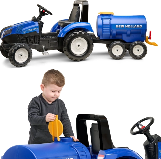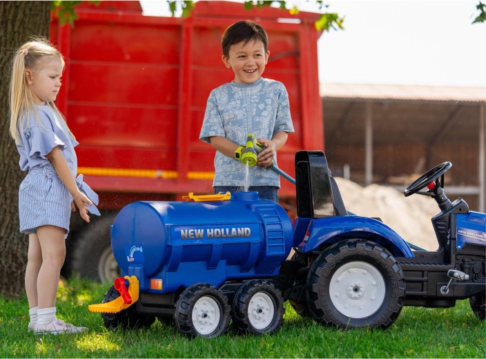 Breid de kindertractor uit met een realistische tank-aanhanger met NEW HOLLAND-licentie. De tandemasser biedt een grote watertank, een functionele kraan/vernevelaar, een openklapbare bovenzijde en vier stabiele wielen voor veilig speelplezier in de tuin. Gemaakt in Frankrijk van duurzaam kunststof.