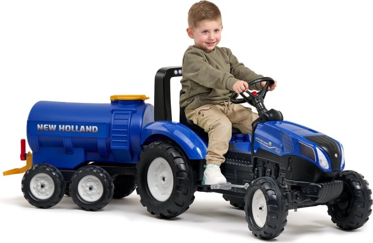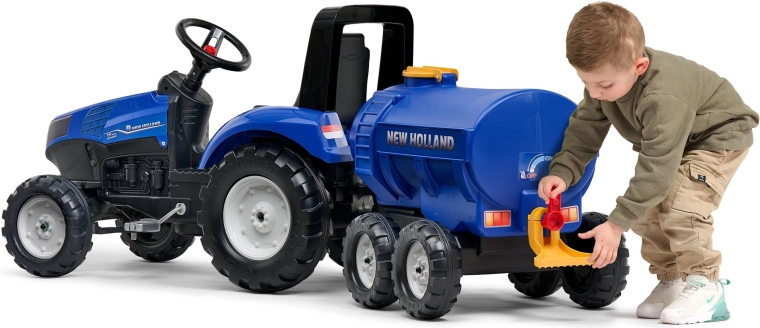 Deze blauwe FALK watertank-aanhanger is de ideale aanvulling voor traptractoren met trekhaak. Dankzij de grote capaciteit van de tank en de werkende kraan met sproeier genieten kinderen van het besproeien van plantvakken, water vervoeren en realistisch boerderijspeelgoed. De officiële NEW HOLLAND-licentie benadrukt de authentieke uitstraling.
