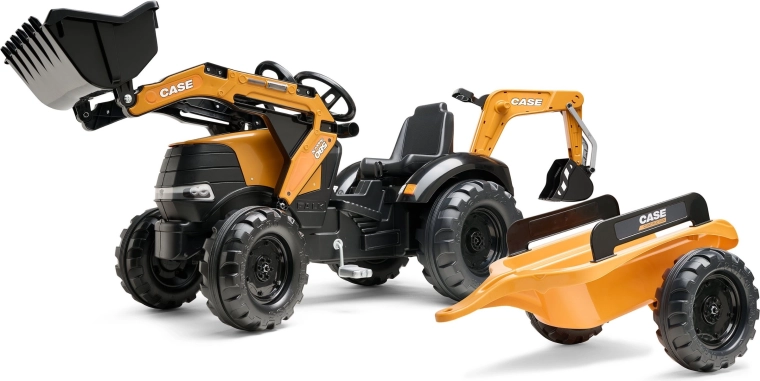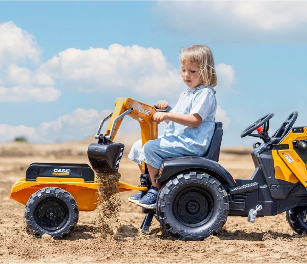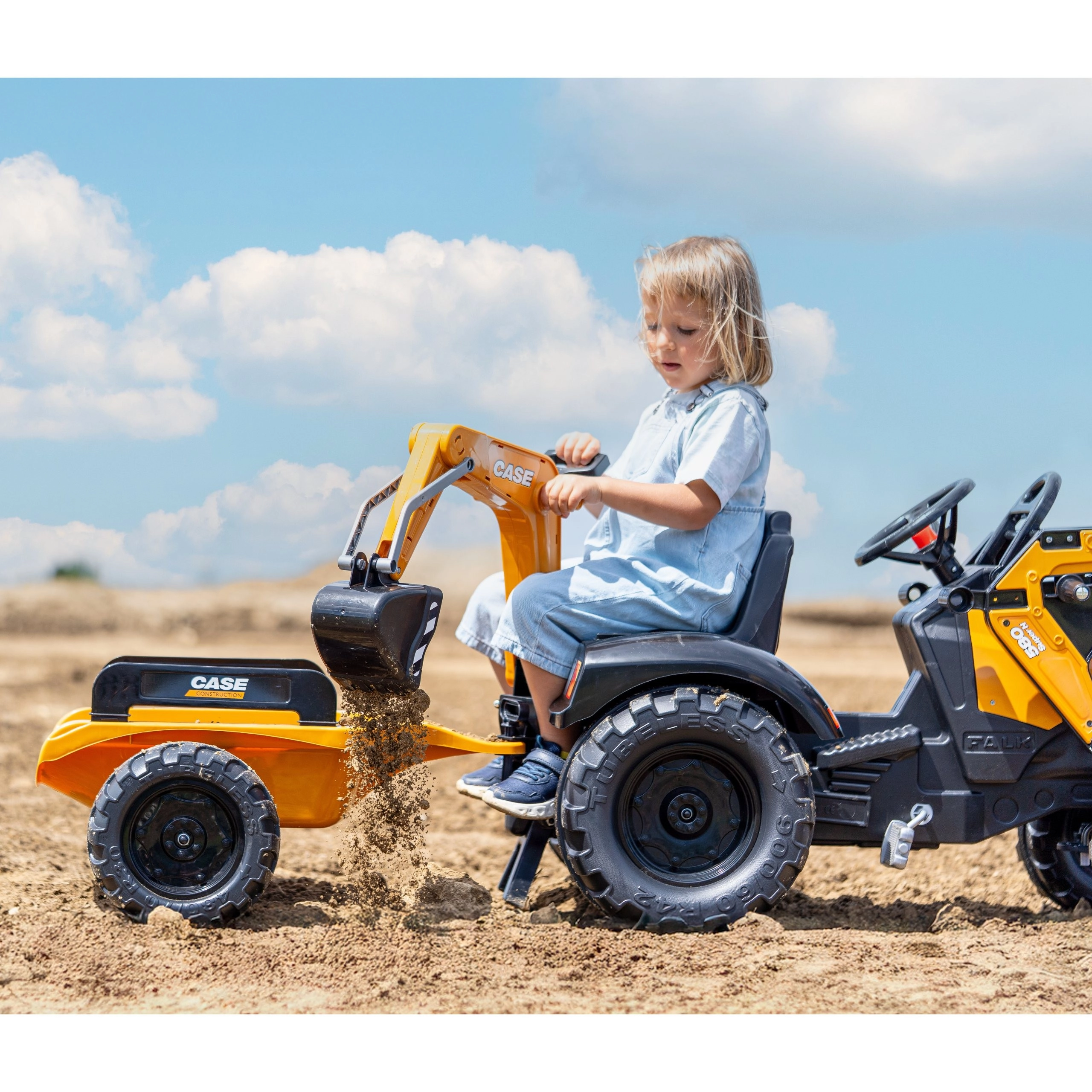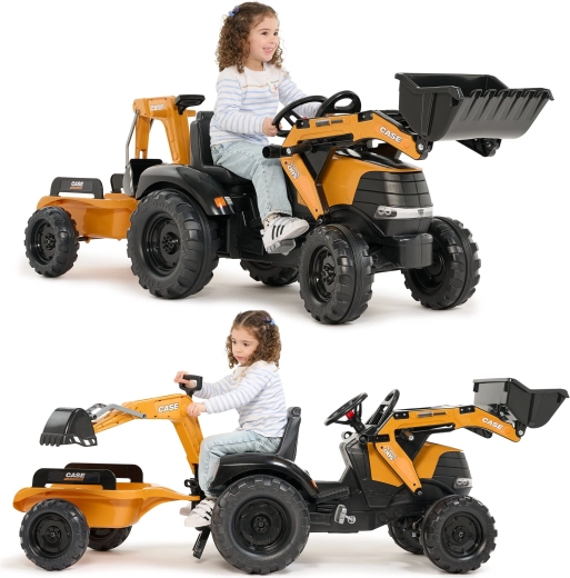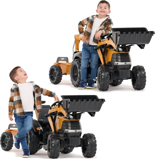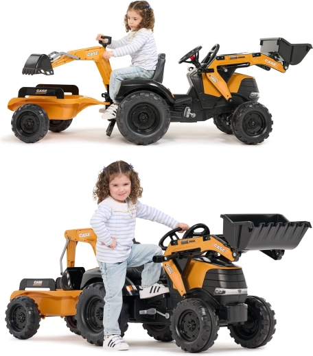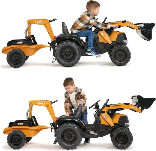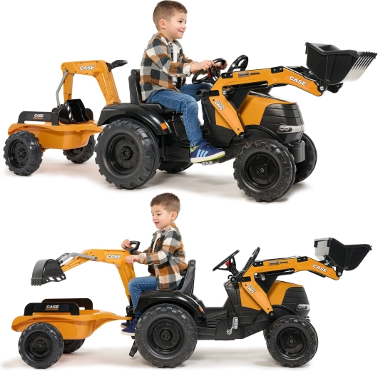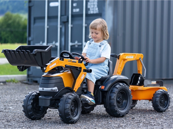 Geniet van uren buitenspeelplezier met de robuuste CASE traptractor, die realistische functies van bouwtechniek combineert met veilig gebruik voor kinderen. Zowel de voorlader als de achtergraafmachine zijn scharnierend en scheppen echt zand, aarde of bladeren, terwijl de 360° draaibare zitting comfortabele bediening aan beide kanten garandeert.