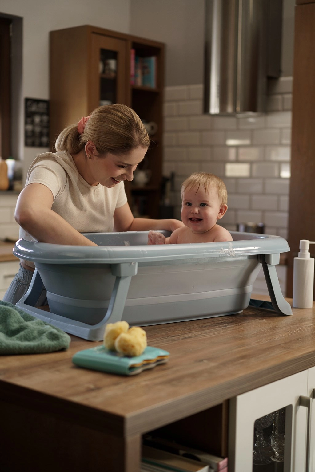 Opvouwbaar babybad TEGA BABY is een praktische en veilige oplossing voor het baden van je baby. Dankzij de compacte afmetingen na het opvouwen, de afvoerplug en de stripthermometer biedt het comfort in kleinere ruimtes en vergemakkelijkt het de dagelijkse verzorging.