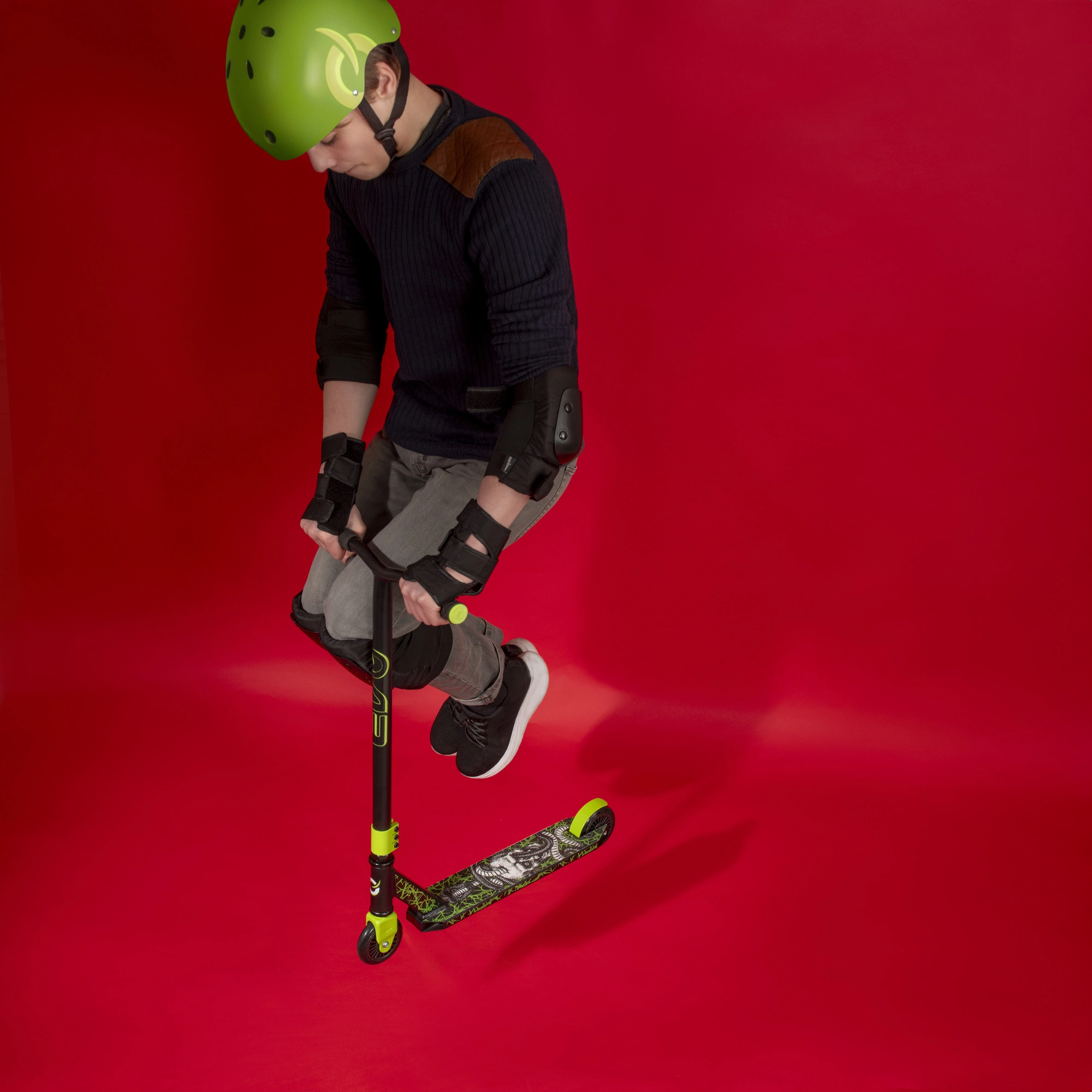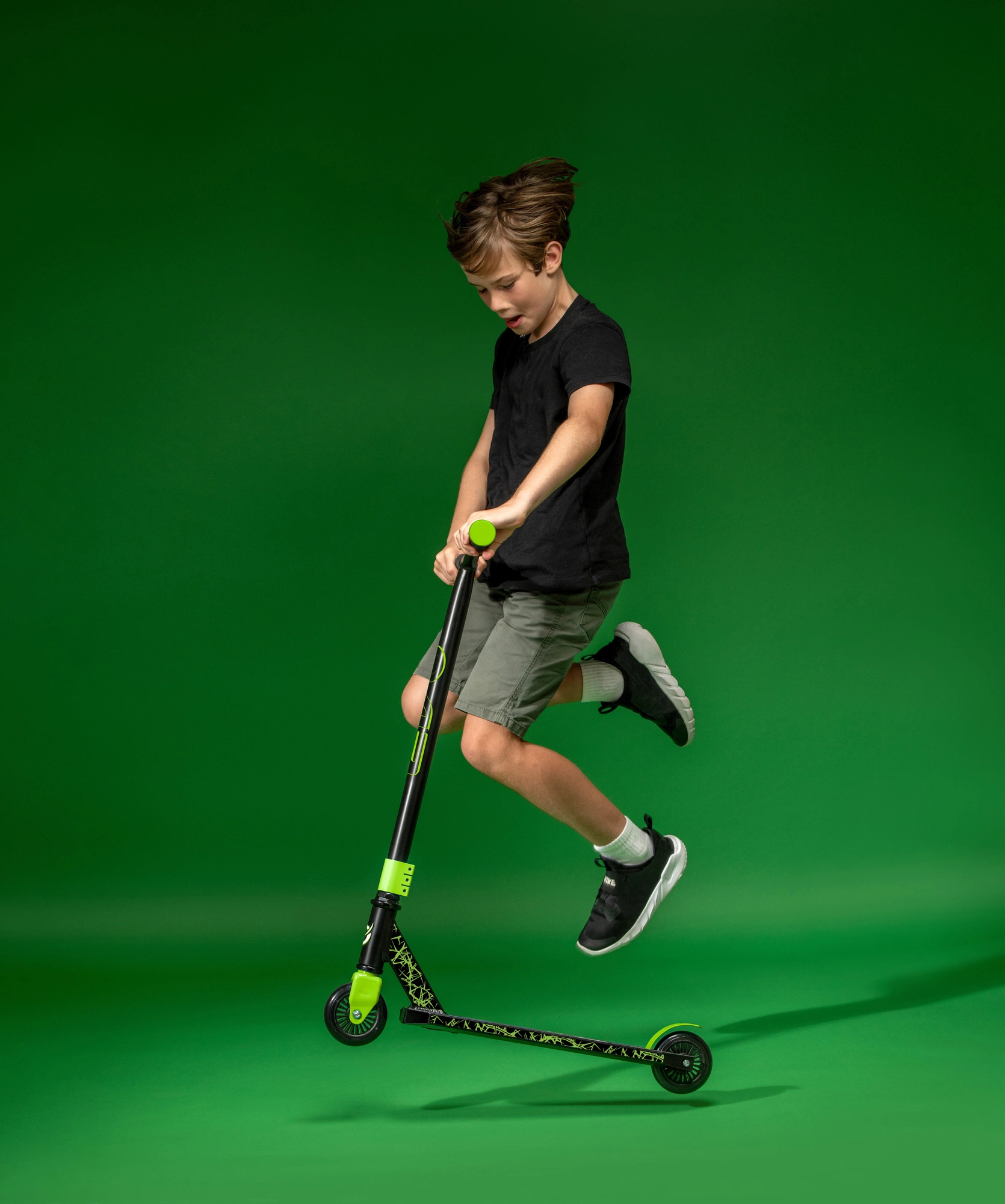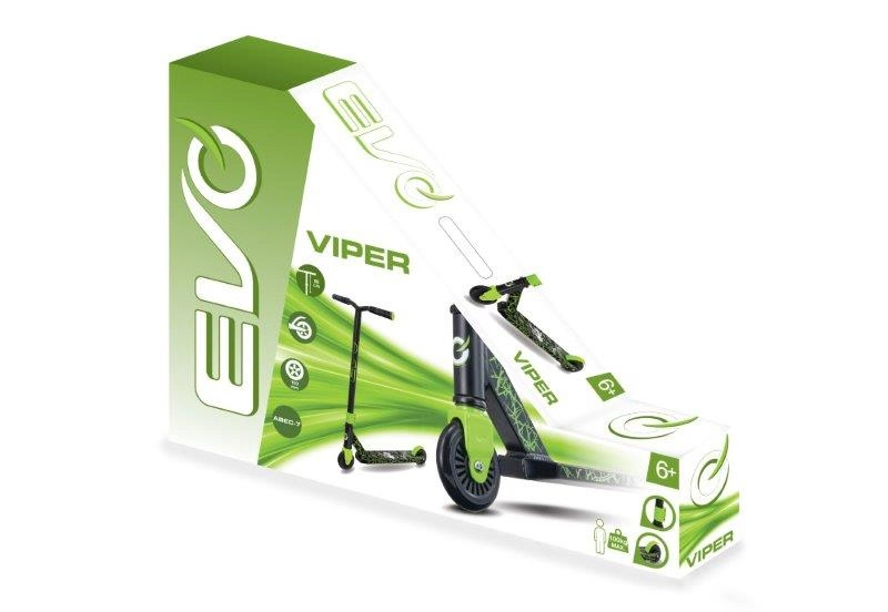 De EVO Viper step in zwart‑groene uitvoering is een uitstekende keuze voor kinderen die hun balans, coördinatie en vertrouwen op de step willen ontwikkelen. Het stevige frame, de compacte wielen en de achterste spatbordrem maken hem tot een betrouwbare partner in het park, op het erf en op het trottoir. Dankzij de ABEC‑7-lagers accelereert hij gemakkelijk en houdt hij een gelijkmatige snelheid.