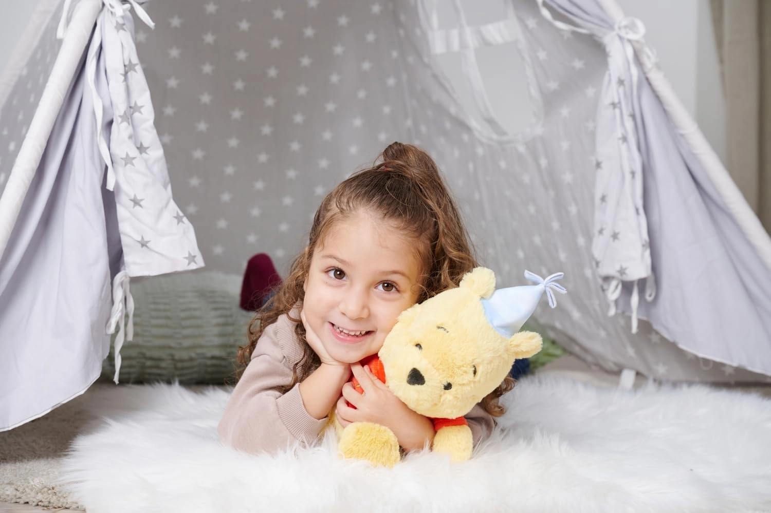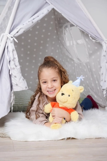 De schattige pluchen teddybeer WINNIE THE POOH van 25 cm hoog maakt zowel kinderen als volwassenen blij. Hij heeft zachte, aaibare haartjes, veilige geborduurde gelaatsdetails en het kenmerkende rode T‑shirt. Ideaal om mee te knuffelen, te slapen en als decoratie in de kinderkamer.