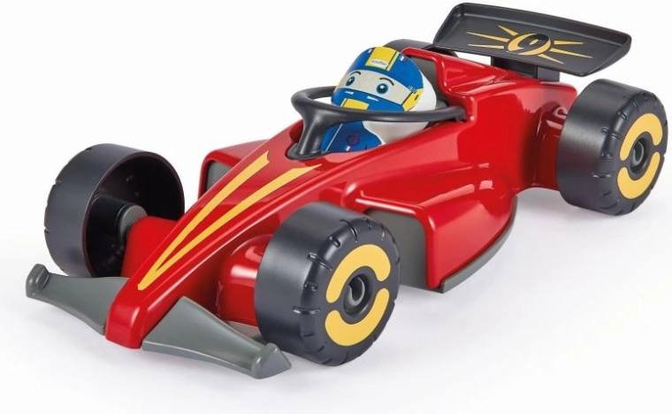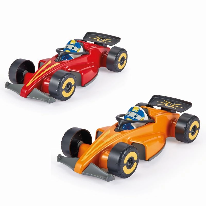Het model is verkrijgbaar in twee kleuruitvoeringen (rood en oranje) met een vrolijke bestuurder in de cockpit. Ideaal als eerste raceauto voor de verzameling – gemakkelijk te besturen, licht van gewicht en schokbestendig.