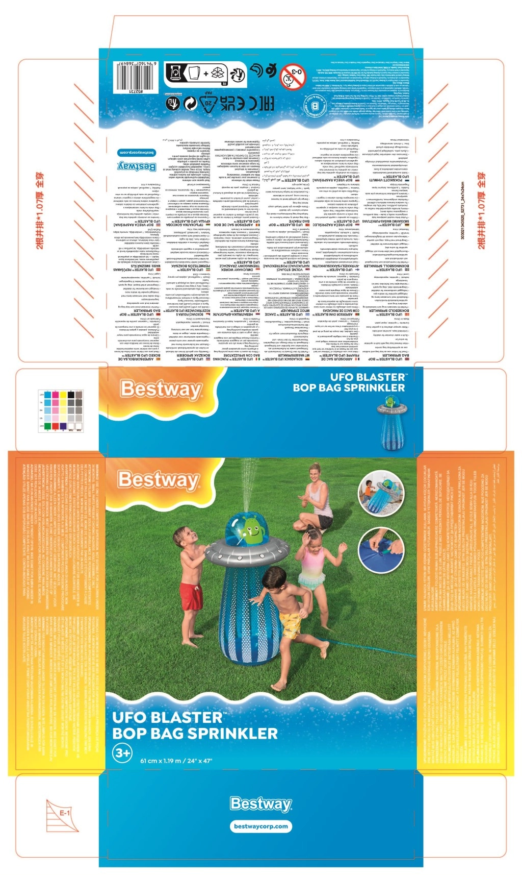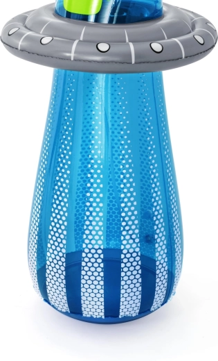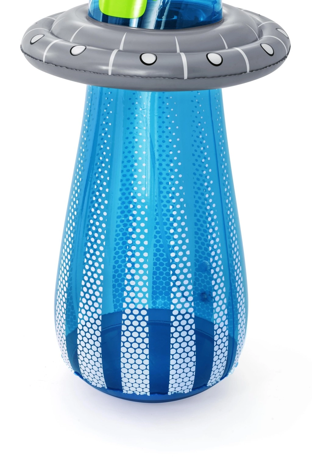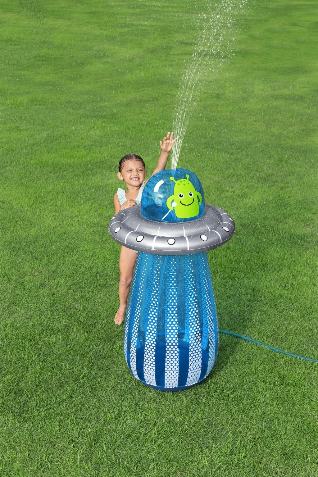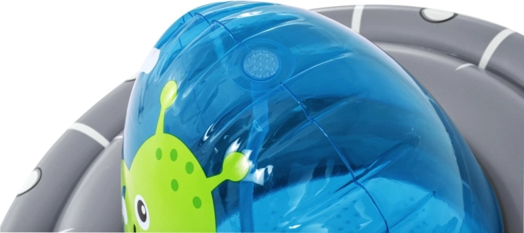 De opblaasbare UFO met een vriendelijke alien biedt kinderen actieve beweging en waterverfrissing in één. Na aansluiting van de slang ontstaat er aan de bovenzijde een waterfontein die de tuin omtovert tot een speelse zomerse speeltuin. Dankzij de ingebouwde waterkamer aan de onderzijde is het speelgoed stabiel en veert het na stoten soepel terug.