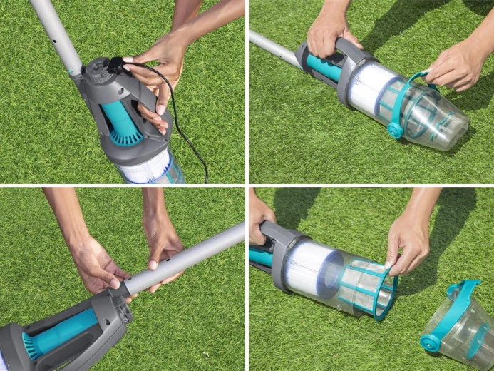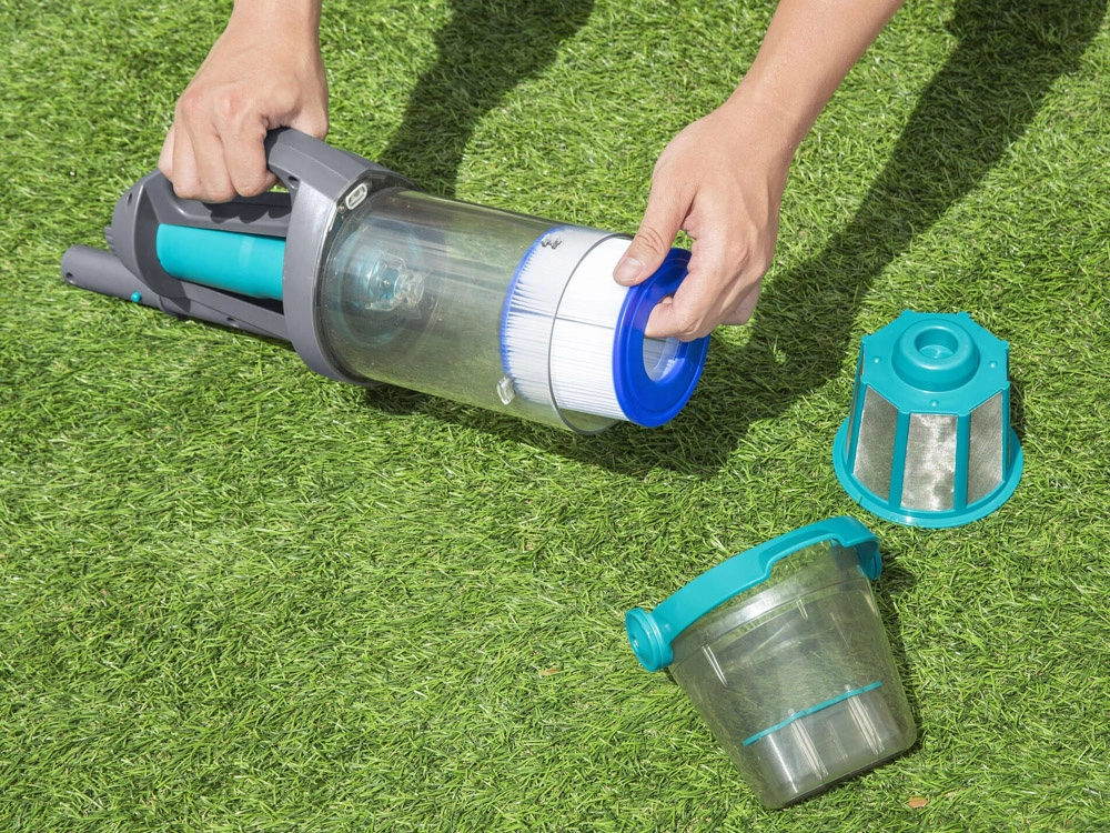 BESTWAY AquaGrip is een krachtige en praktische zwembadstofzuiger zonder kabel, ontworpen voor regulier onderhoud en grondige reiniging. De transparante opvangbak van 2 liter maakt directe controle van de vulling mogelijk en de dubbele filtratie vangt alles op, van bladeren tot fijne verontreinigingen. Automatische dompelsensoren beschermen de motor – de stofzuiger activeert alleen onder water.