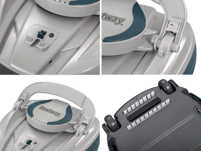 De robotische stofzuiger BESTWAY AquaTronix G150 biedt comfortabel en efficiënt zwembadonderhoud dankzij de volledig snoerloze werking. Slimme watersensoren en richtingsstralen zorgen voor betrouwbare beweging over de bodem en automatisch inschakelen bij onderdompeling en uitschakelen bij uitname uit het water. De grote filtermand met een inhoud van 2,0 l haal je in enkele seconden eenvoudig eruit en maak je leeg.