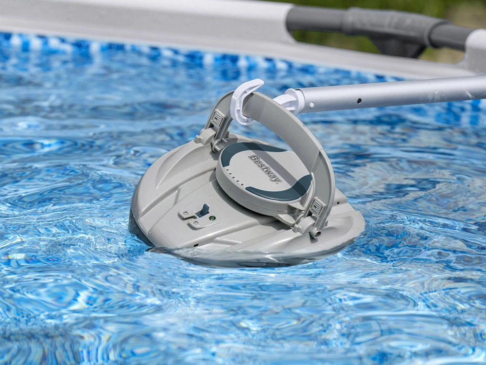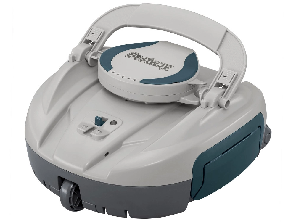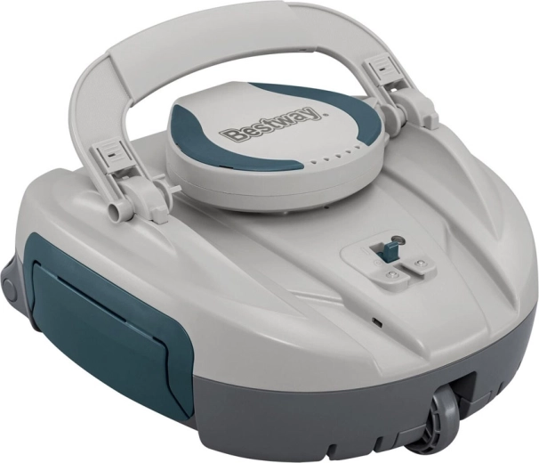 Op één lading kan de stofzuiger tot 60 minuten reinigen, volledig opladen duurt ongeveer 3,5–6 uur. Dankzij de praktische draaggrepen is de handling eenvoudig en veilig. Het apparaat is bedoeld voor zwembaden met een vlakke bodem (niet geschikt voor stalen wanden).