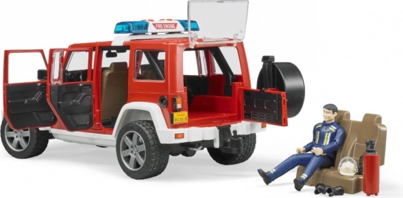De brandweer Jeep Wrangler van Bruder is een gedetailleerd model dat elk kinderbrandweerkorps compleet maakt. Deze Jeep heeft openende deuren, motorkap en achterraam, wat de interactiviteit verhoogt. Het model is ook uitgerust met een afneembaar dak en trekhaak. Dankzij de mogelijkheid om met een verlengd stuur te sturen, wordt het spelen nog leuker.