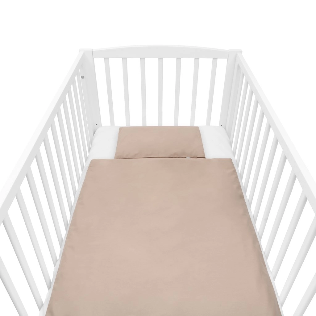 Een heerlijk zacht babybedset in cappuccinokleur met een kussentje en dekentje met anti-allergene vulling. De hoes van 100% katoen is zacht voor de gevoelige huid, de vulling met een hoogte van 3 cm houdt warm, ook op koelere dagen. Praktisch en makkelijk te onderhouden – machinewasbaar.