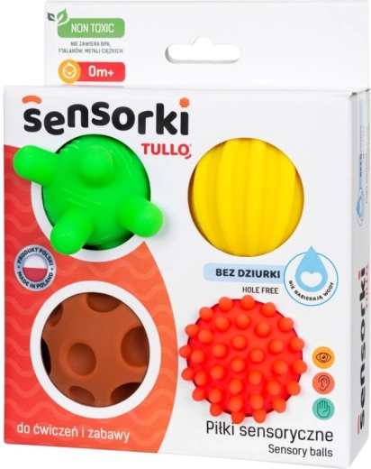 Ontdek de set van vier sensorische TULLO-ballen zonder openingen, ontworpen voor veilig spel voor baby’s en peuters. De verschillende maten en oppervlakken ondersteunen tactiele stimulatie, ontwikkeling van de fijne motoriek en bieden verlichting bij doorkomende tandjes. Het zachte, gemakkelijk vast te pakken materiaal is ideaal voor kleine handjes en dagelijks zintuiglijk spel.
