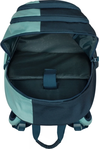Drie afzonderlijk afsluitbare compartimenten bieden een overzichtelijke indeling van schoolspullen. Binnenin vind je een organizer, vakken voor kleinigheden, een sleutelhanger en een gevoerd 15" vak voor laptop of tablet. De zijvakken van stevig materiaal zijn ideaal voor een drinkfles. Voorste riemen bevestigen eenvoudig een skateboard, trui of jas.