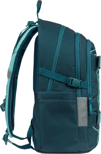 BAAGL Skate Petrol GRS combineert modern design, ergonomie en duurzame productie. Anatomisch gevormde rug met lendensteun en ademende padding zorgen voor comfort de hele dag. Dankzij volledig verstelbare compressieriemen past de rugzak zich uitstekend aan het lichaam aan en houdt hij de inhoud stabiel op zijn plaats.