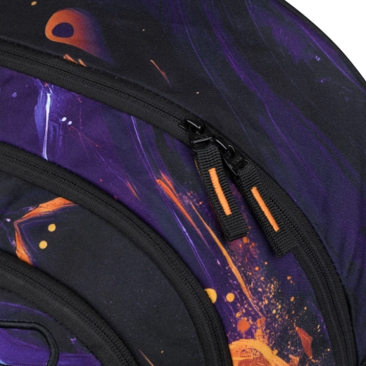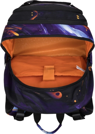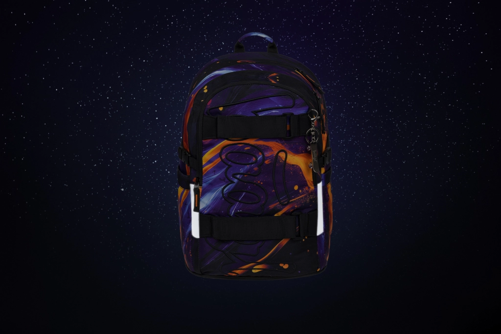 De binnenkant bestaat uit drie afzonderlijk afsluitbare compartimenten met een praktische organizer en een gevoerd vak voor een 15"-laptop of tablet. Betrouwbare YKK-ritsen garanderen soepel openen, terwijl riemen aan de voorkant van de rugzak het bevestigen van een skateboard of jas mogelijk maken. Er zijn ook zijvakken van stevig materiaal passend bij het design, ideaal voor een fles. Inclusief een stijlvolle hanger en de mogelijkheid om de rugzak te matchen met een etui of gymsack in hetzelfde motief.