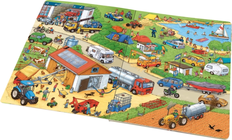 Dankzij het interactieve bekijken van de afbeeldingen oefenen kinderen hun concentratievermogen en logisch denken. Ouders kunnen gesprekken voeren over wat ze op de pagina’s zien en samen objecten, voertuigen of personages zoeken. Dat zorgt voor vermaak onderweg én thuis en ondersteunt de natuurlijke taalontwikkeling.