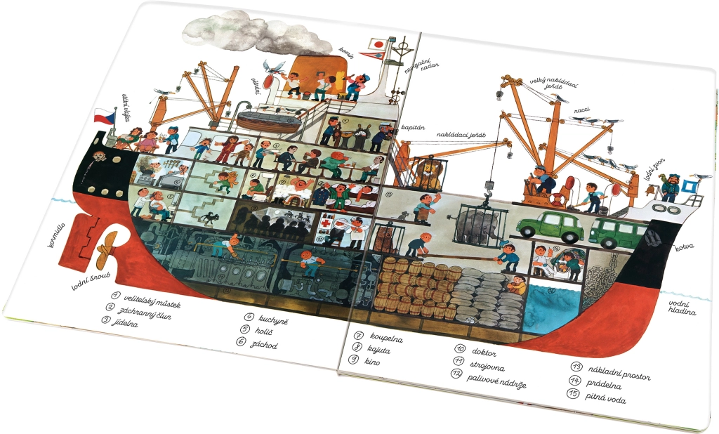 Ga samen met de kinderen naar de vismarkt, de drukke haven, het zeestrand en zelfs het binnenste van een groot zeeschip. Het boek opent de deur naar de wereld van vissers, duikers, zeelieden en zelfs piraten – en dat alles op een speelse manier van kijken en vertellen.