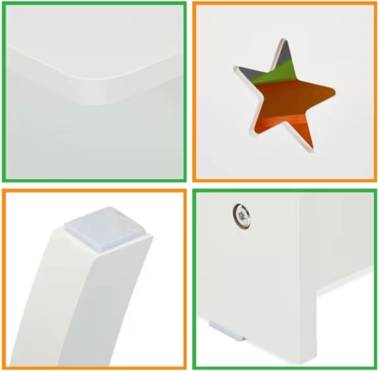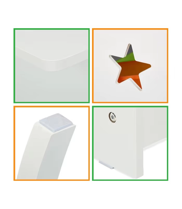Stevig MDF, een glad oppervlak en afgeronde randen zorgen voor stabiliteit en veiligheid bij dagelijks gebruik in de kinderkamer.