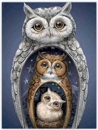 Diamant schilderen uilen-matroesjka 30 × 40 cm