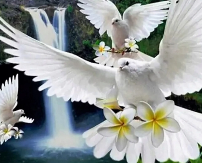 - Elegant motief van witte duiven in het formaat 30 × 40 cm