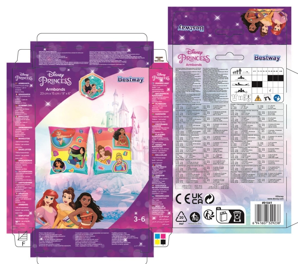 Het praktische tweekamersysteem verhoogt de veiligheid, terwijl duurzaam PVC met gladde naden zacht is voor de kinderhuid. Heldere kleuren en een aantrekkelijk DISNEY Princess-print motiveren bovendien tot activiteit in het water.