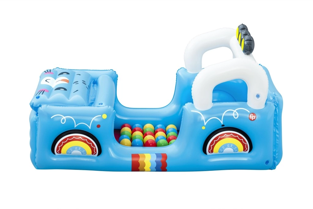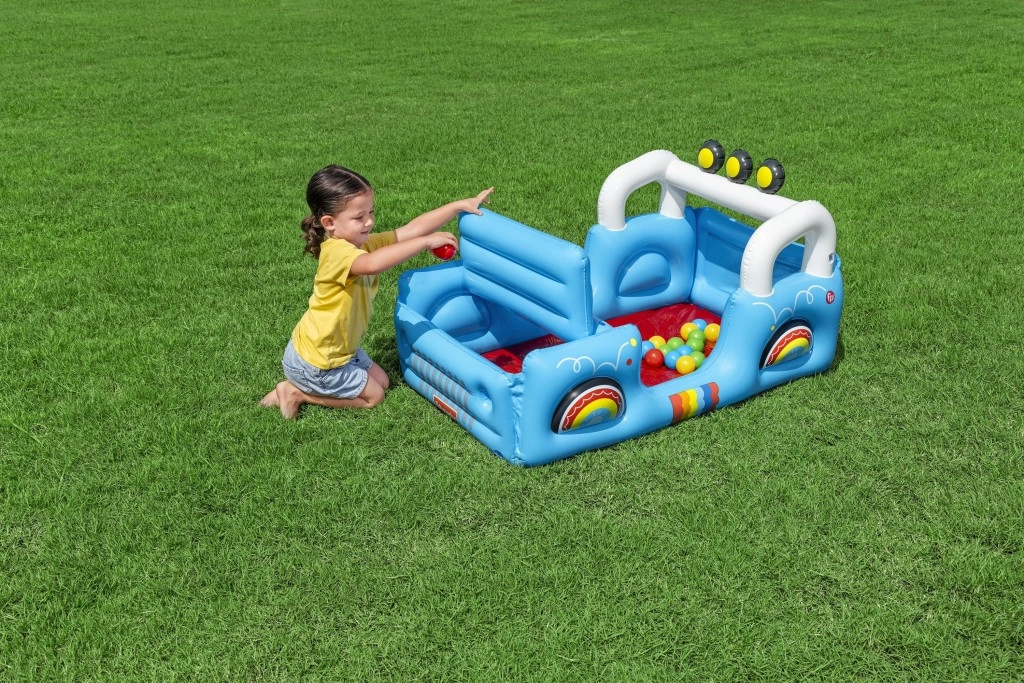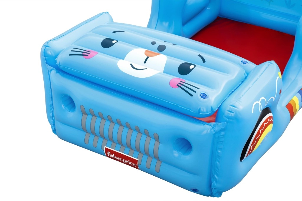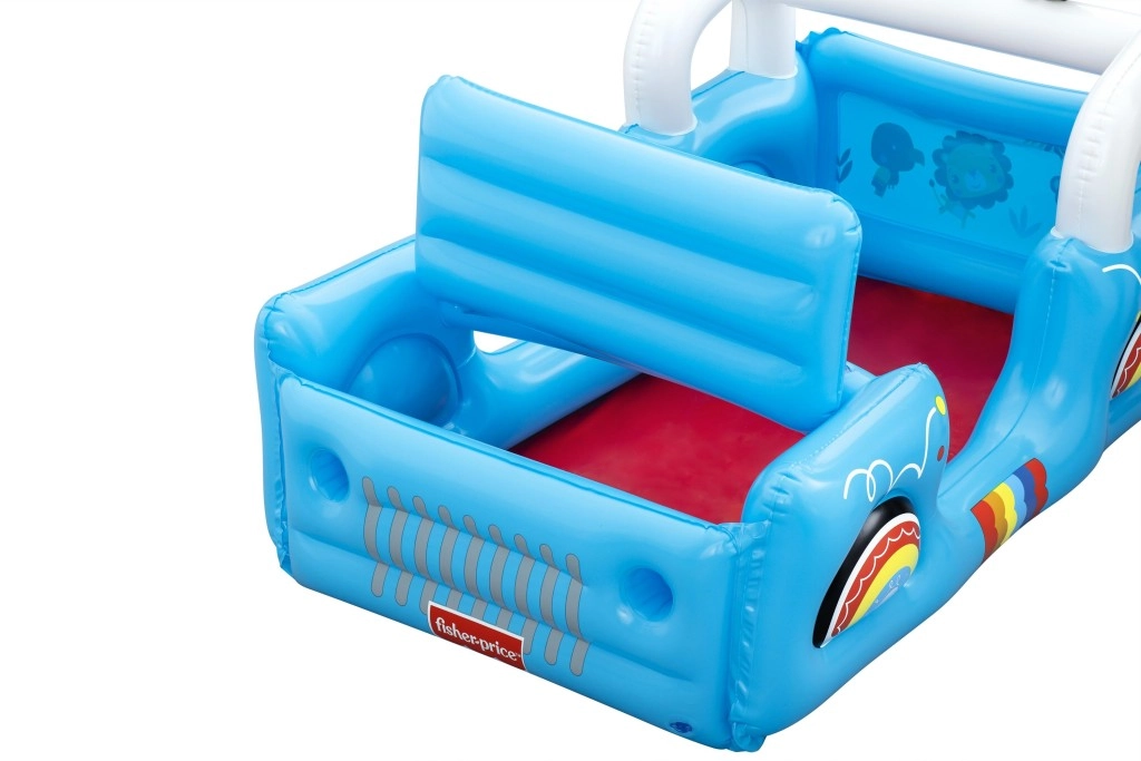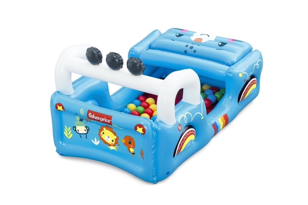 De leuke opblaasbare FISHER-PRICE speelauto in safaristijl verandert elke kamer en tuin in een veilig hoekje vol plezier. Heeft zachte, gewatteerde wanden, een ruim ballenbad en een praktische, te openen motorkap voor makkelijke toegang. Inclusief 25 gekleurde ballen die de fijne motoriek en oog-handcoördinatie stimuleren. Duurzaam materiaal, veiligheidsventielen en een reparatiepatch zorgen voor een lange levensduur.