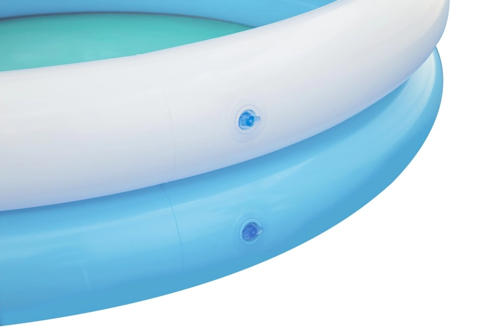 De stabiele opblaasconstructie van duurzaam PVC en de zachte wanden bieden comfort én veiligheid tijdens het spelen. Met een inhoud van ongeveer 130 l is het zwembad ideaal voor jongere kinderen en dankzij praktische ventielen is het snel op- en leeg te laten. In de verpakking zit ook een reparatiepatch voor eenvoudig onderhoud.