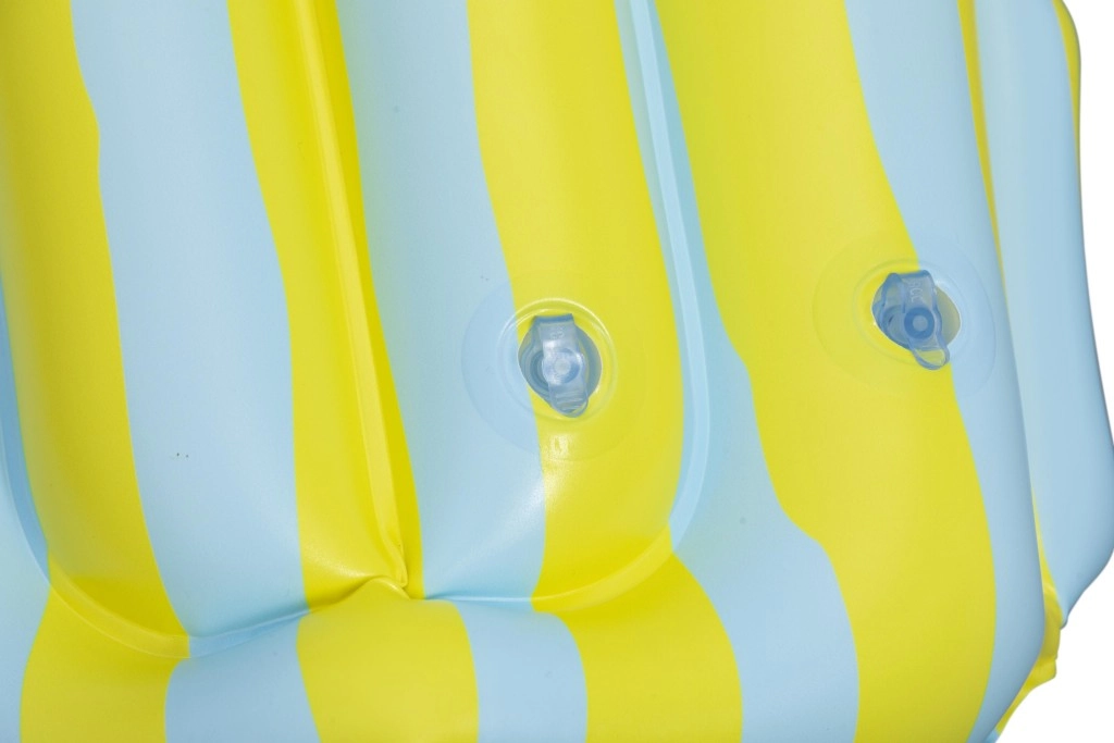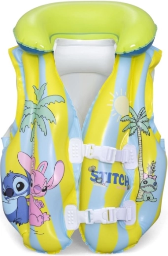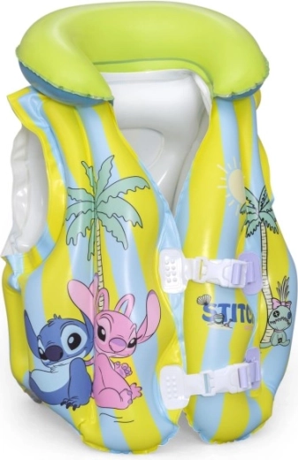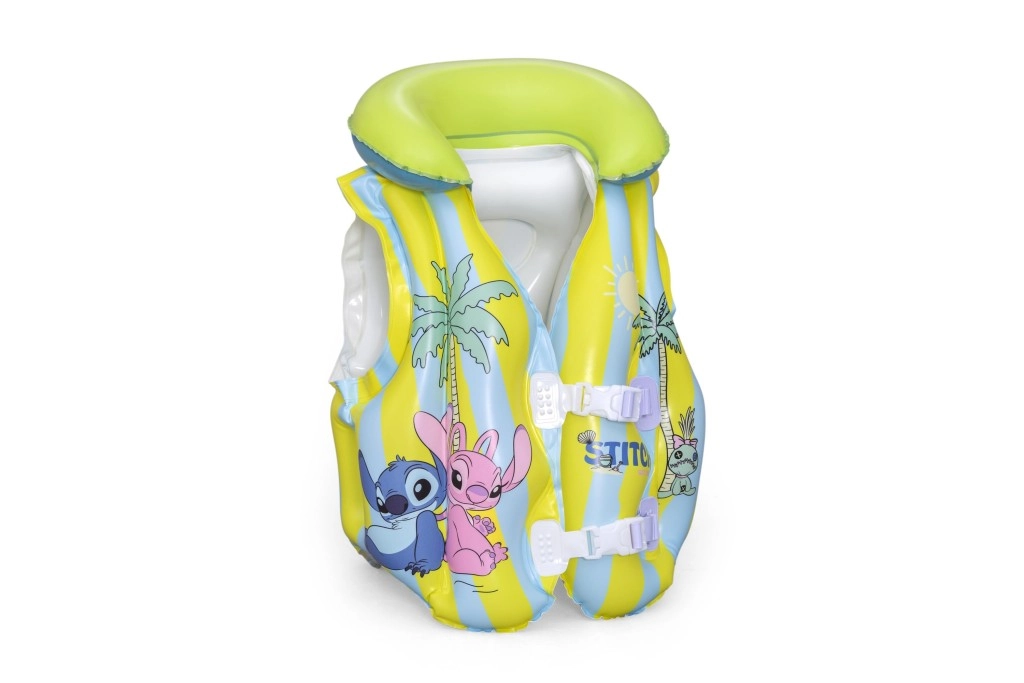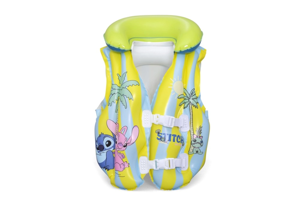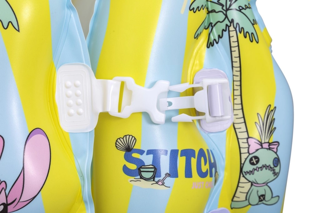 Dit kinderopblaasbare vest met het populaire STITCH-motief helpt jonge zwemmers zich zekerder te voelen in het water. Dankzij meerdere opblaasbare kamers, een zachte kraag en verstelbare gespen past het zich gemakkelijk aan het lichaam aan en zorgt het voor stabiliteit in het zwembad en op kalm water. Pastelgele en lichtblauwe strepen met speelse prints verhogen de zichtbaarheid en geven een leuk uiterlijk.