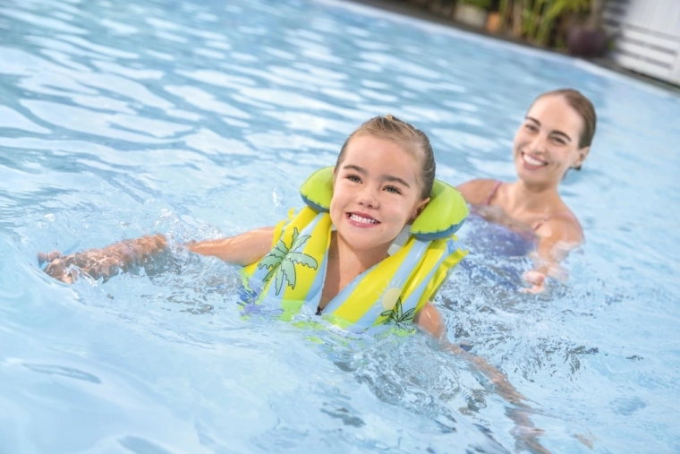 Het vest is gemaakt van hoogwaardig, duurzaam vinyl voor een lange levensduur. Praktische ventielen maken snel opblazen en leeglaten mogelijk, zodat het in een oogwenk gebruiksklaar is en na het zwemmen gemakkelijk kan worden opgeborgen. Ideaal als zwemmethodehulpmiddel voor leren en spelen in het water (vervangt geen reddingsvest).
