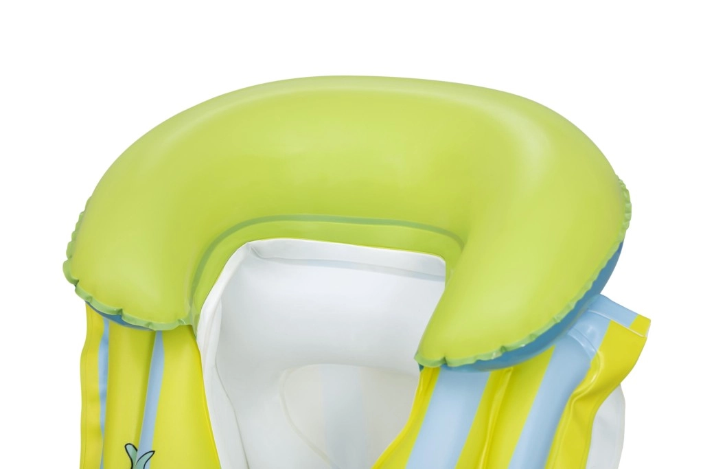 De zachte, verhoogde kraag helpt het hoofd van het kind boven water te houden en verhoogt het comfort tijdens het leren zwemmen en waterspelletjes.
